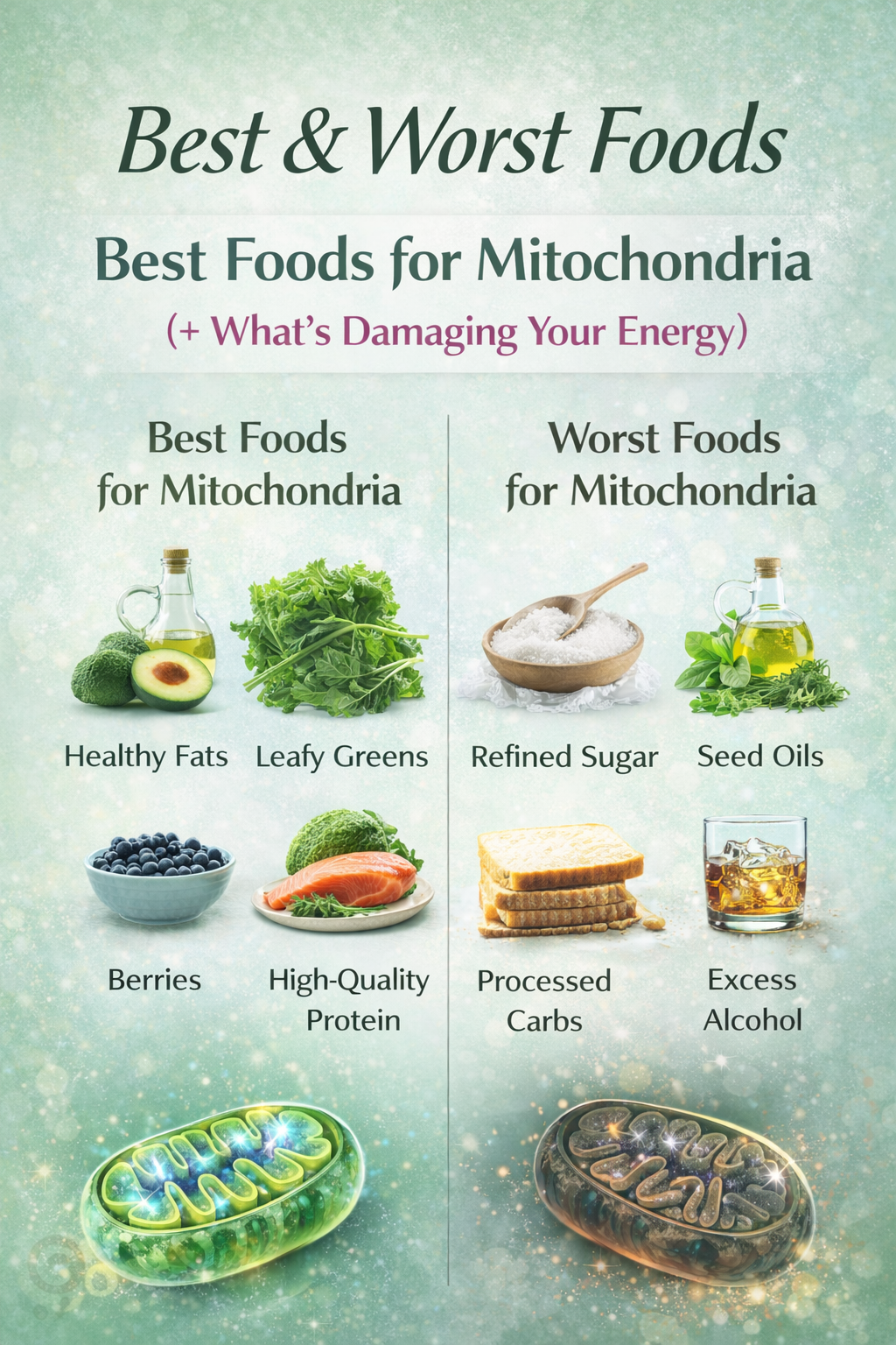 Learn the best foods for mitochondrial health, what damages your energy, and how to support your cells so your body can actually produce energy efficiently.