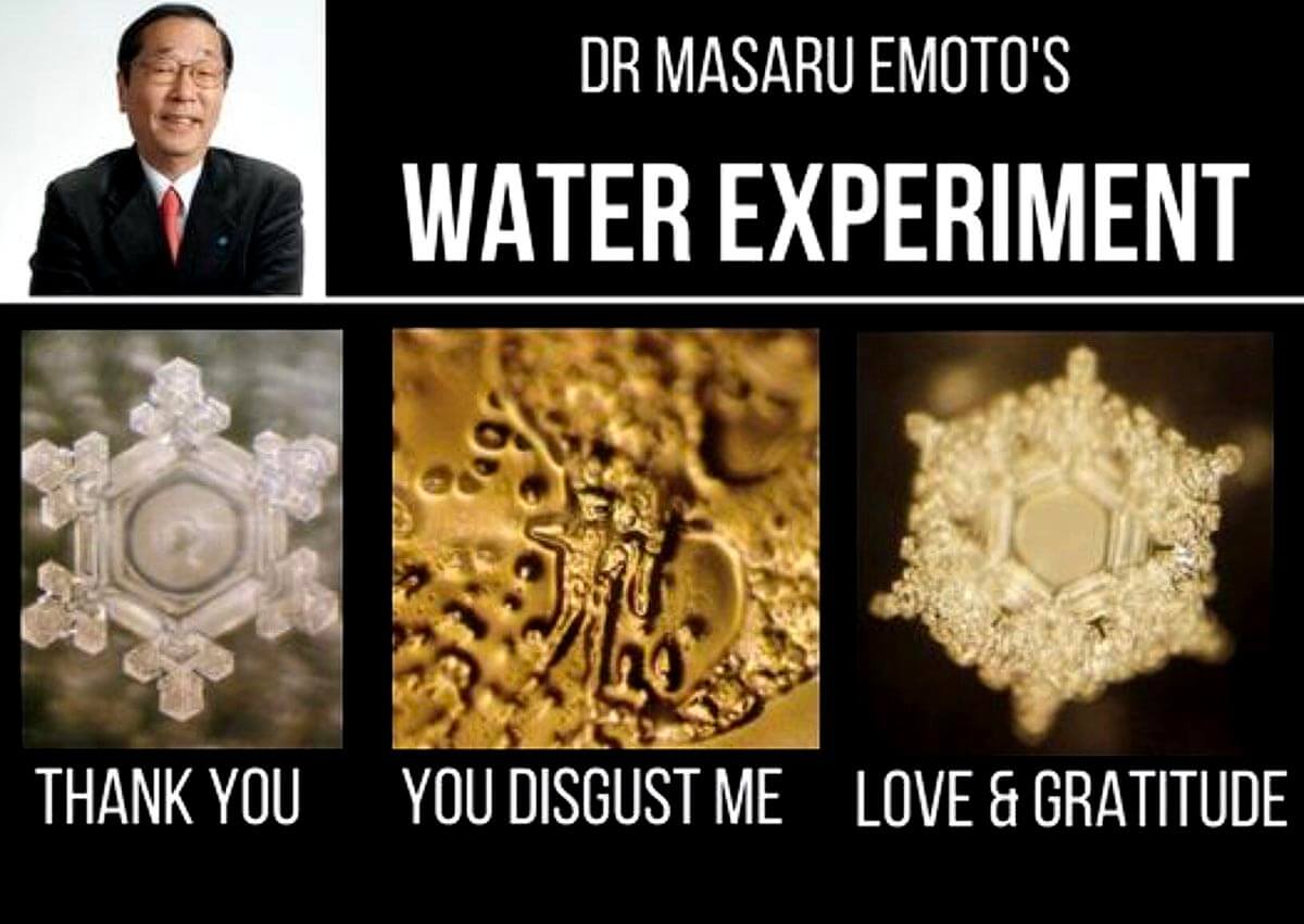 Now, the “follow-the-science” crowd will tell you Emoto’s work is “not accepted” because it can’t be perfectly replicated. (Right. Because human emotion fits so neatly inside a lab protocol.) The point isn’t to worship the data - it’s to notice the pattern. Water seems to reflect the energy around it. And considering your body is made of about 70 percent water, that should make you stop and think.