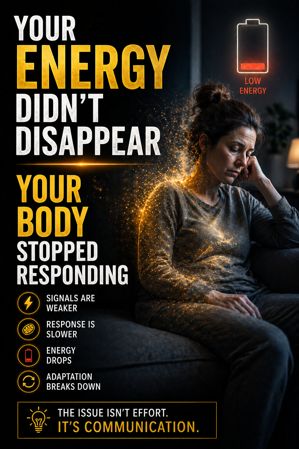 Your body may stop responding the same way when cellular signaling, mitochondrial energy production, insulin sensitivity, or stress adaptation becomes less efficient. The issue is not always effort. Sometimes the body no longer receives or responds to signals clearly, which can affect energy, recovery, metabolism, and resilience.