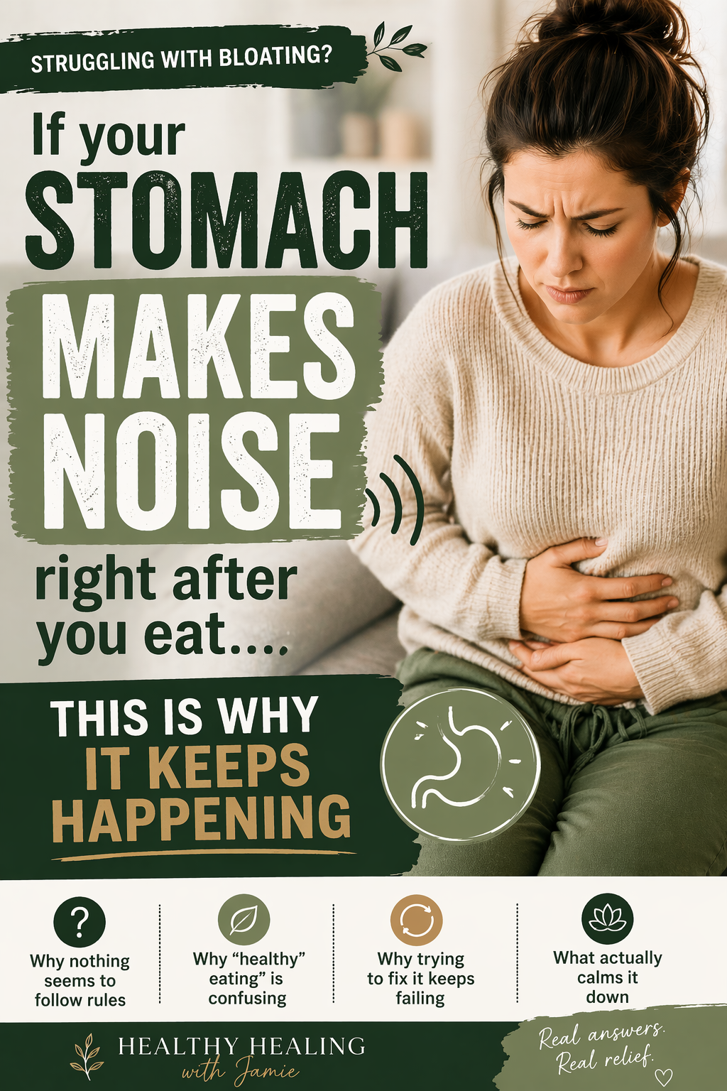 When the gurgling continues, it’s a sign your digestion isn’t settling. Instead of moving through food calmly, your system stays active and reactive, which leads to ongoing noise, pressure, and discomfort.